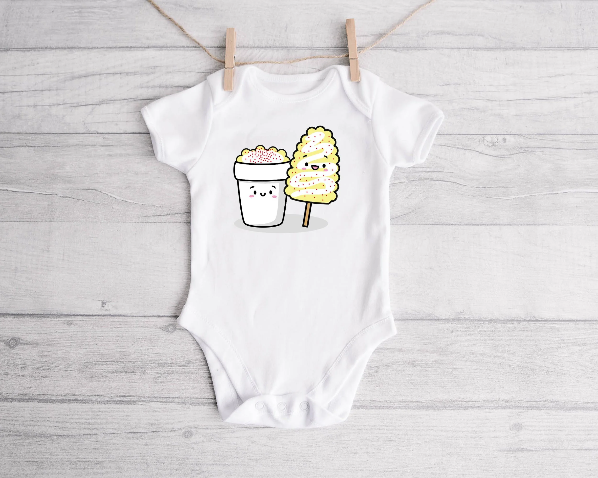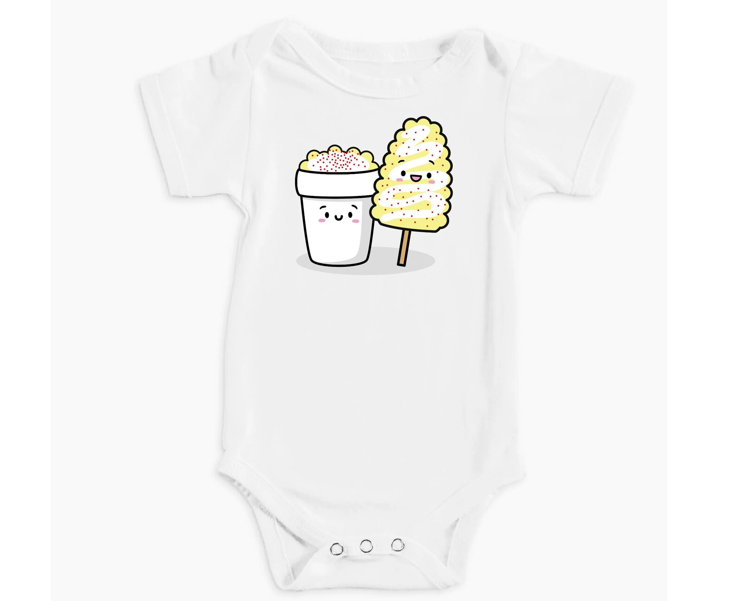 This playful baby bodysuit features a happy and adorable esquite cup alongside a tasty elote preparado illustration. Super sweet and cute, it’s perfect for your little one’s wardrobe. We highly recommend sizing up for extra comfort and room to grow.