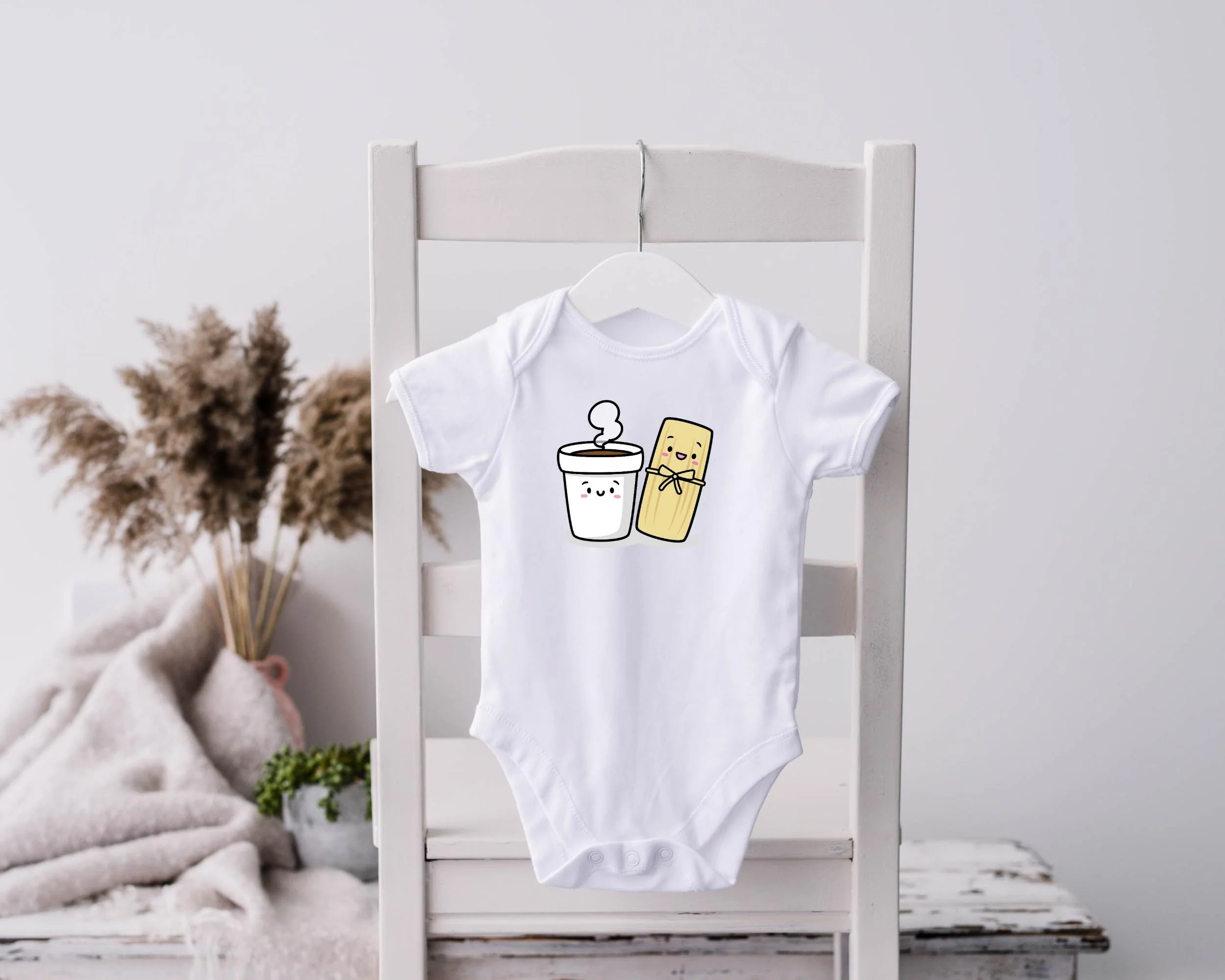 Celebrate tradition with this playful baby bodysuit featuring a happy tamal and champurrado duo, both sporting cheerful smiley faces. This adorably cute design brings a touch of Mexican culture to your little one’s wardrobe. For the best fit and extra comfort, we highly recommend sizing up. Perfect for keeping your baby cozy and stylish with a fun, cultural twist!